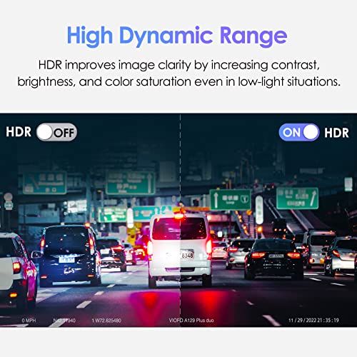 The Viofo A129 Plus Duo sets a high standard for video quality. It records in 4K Ultra HD at the front and Full HD at the rear, delivering exceptionally sharp and detailed footage. With a resolution of 3840x2160p at 30FPS for the front camera, and 1920x1080p at 30FPS for the rear, it provides crystal-clear recordings.