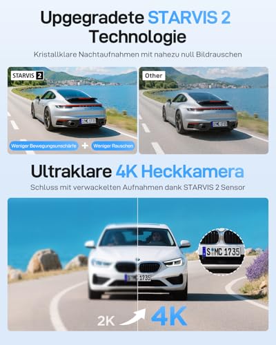 [4K + 4K + FHD recording] Equipped with three state-of-the-art cameras and STARVIS 2 technology, the A229 Ultra dash cam with dual 4K front and rear cameras plus a 1080P fisheye interior camera (210° ultra wide angle) sets new standards. It offers full coverage and crystal clear recordings for added security.