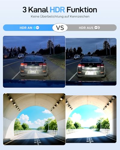[3-channel HDR] The combination of 4K resolution and HDR technology optimizes the recording of all channels. It perfectly balances light and shadows and improves license plate readability even at high speeds.