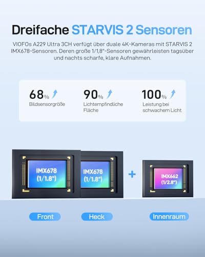 VIOFO A229 Ultra 3 Lens Dash Cam Car, 4K + 4K + 1080P Front Rear Inside, 210° Fisheye Interior Car Camera, Triple Starvis 2 Sensors & Dual 4K HDR, 5GHz Wi-Fi & GPS, Voice Control, Night Vision 2.0