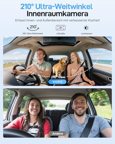 VIOFO A229 Ultra 3 Lens Dash Cam Car, Dual 4K + 1080P Front Rear Inside, 210° Fisheye Interior Car Camera, Triple STARVIS 2 Sensors & Dual 4K HDR, 5GHz Wi-Fi & GPS, Voice Control, Night Vision 2.0